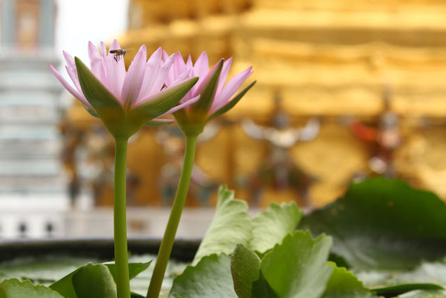 Podemos também encontrar espalhados pela cidade (ou melhor, envolvidos por ela) numerosos templos (wat) budistas, uns mais para turistas, outros para "consumo" local. A espiritualidade não é fácil de encontrar no Wat Phra Kaeo inundado por turistas, mas é curioso ver que a fé (ou crença, se preferirem) dos tailandeses e dos turistas asiáticos é uma parte essencial da sua vida, algo que pude sentir ao assistir a uma "missa" budista no Wat Suthat ou nas numerosas ofertas que se fazem aos deuses no santuário de Erawan, construído para combater os maus espíritos que se julgava provocarem problemas na construção de um Hotel, e com um sucesso tão grande que hoje é um dos locais de devoção mais movimentados da cidade!