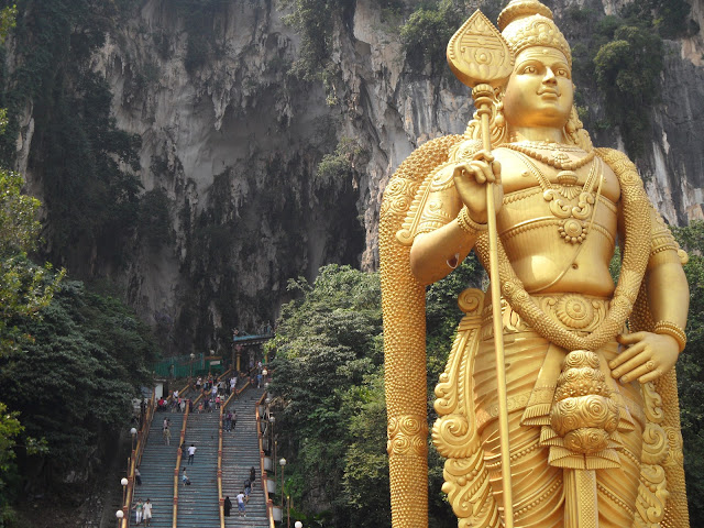 O autocarro que nos trouxe de Malaca a Kuala Lumpur deixou-me numa central de autocarros super-moderna, fora do centro da cidade. Depois de me ter desorientado um pouco com o sistema de comboios e metro de superfície, lá consegui chegar a bom porto, isto é, ao hostel. Uma vez que já tinha dominado os transportes para fora da cidade, decidi ir visitar as grutas de Batu, que se encontram a 13 km a norte de Kuala Lumpur (pelo menos teoricamente, uma vez que a malha urbana se estende até às grutas).