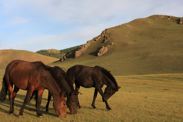 O Parque Nacional do rio Orkhon está inserido no Grande Parque de Naiman Nuur que significa 8 lagos. Esta área, criada por sucessivas erupções vulcânicas, é dominada por vales encaixados, quedas de água e relevos vulcânicos de pormenor. A queda de água de Orkhon Khürkhree é o ex-libris desta região. Com mais de vinte metros de altura encontra-se inserida num anfiteatro vulcânico bastante apertado e com paredes rectilíneas. Nada melhor para conhecer esta região do que um passeio de três horas a cavalo. Escusado será dizer que o meu traseiro se ressentiu desta opção! No entanto, foi uma viagem fabulosa e consegui contemplar uma paisagem verdejante que se estende até perder de vista.