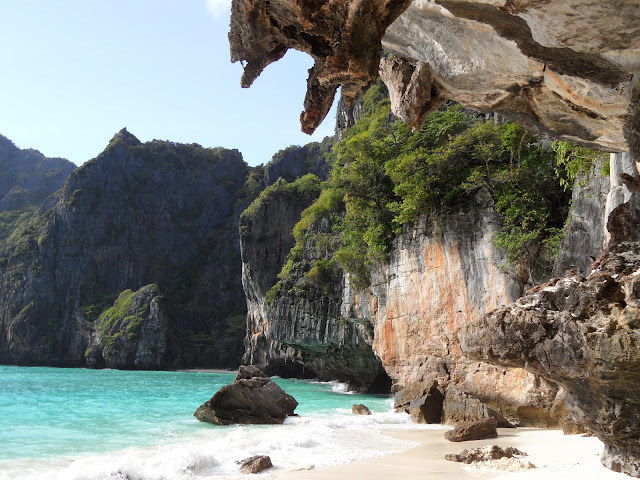 De forma a ver os efeitos deste turismo, rumamos a Phi Phi Leh, a ilha mais pequena e onde foi filmado "A Praia", com Leonardo DiCaprio. Aqui não há construções mas há centenas de turistas que se amontoam à espera da fotografia. É decadente. Refugiei-me num canto da praia, debaixo de uma cavidade na rocha e ai desfrutei do nosso pequeno espaço do paraíso. Quando tomei banho no mar descobri que também aqui boiam garrafas e plásticos vazios. Voltamos a Phi Phi Don. À noite transforma-se numa discoteca gigante. Descobrimos de onde provêm as "garrafas boiando vazias".