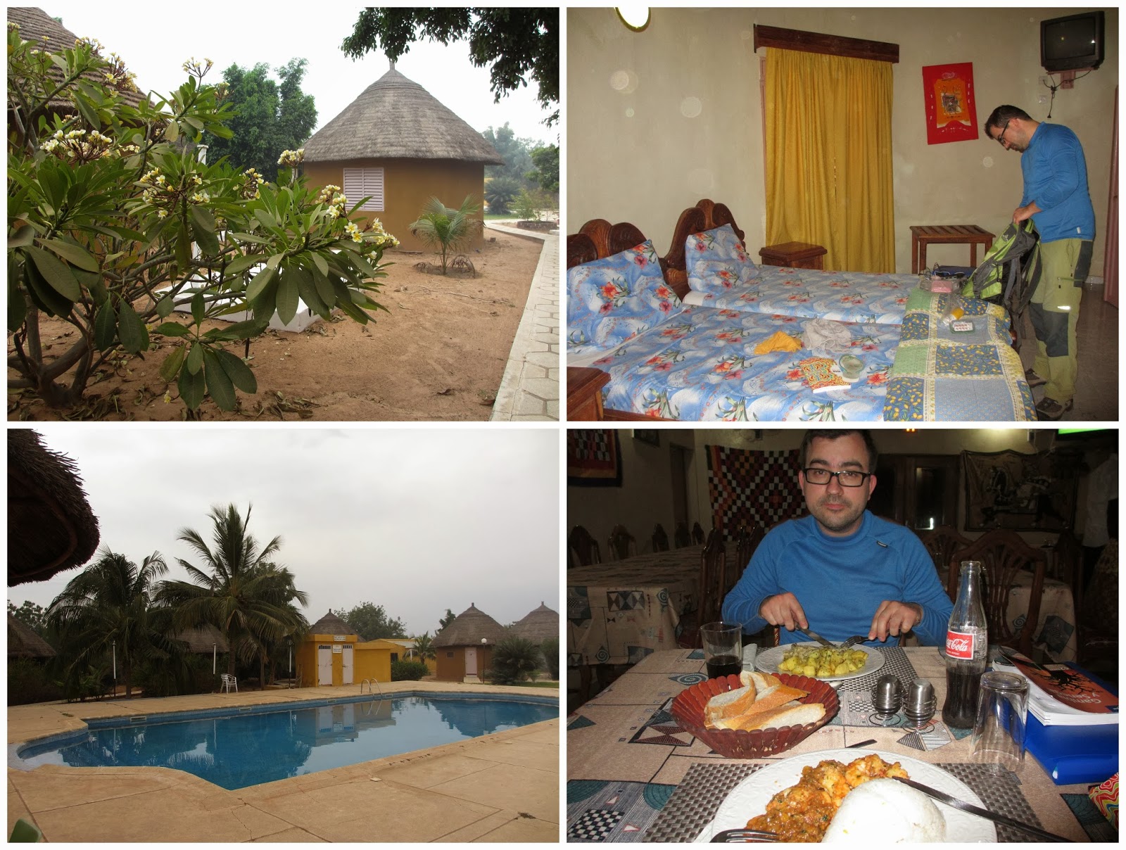 Este foi o hotel que escolhi na cidade de Tambacounda para poupar algum dinheiro. Escolhi o quarto mais barato que havia (um anexo do hotel) mas de boa qualidade. O quarto tinha wc e rede mosquiteira e tv. O hotel não tem cozinha mas tem um restaurante com preços justos. O hotel localiza-se mesmo no centro da cidade e em frente a uma agência de viagens (a única na cidade) que permite marcar tours para o Parque Nacional Niokolo Koba. Paguei 22 000XOF pelo quarto duplo.